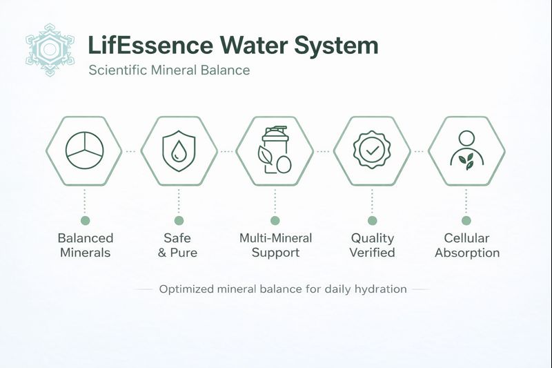 LifEssence Water is more than simple hydration — it’s nature’s balance in every sip. Enriched with a full spectrum of essential minerals, it helps restore inner balance, energize the body, and support overall wellness.
